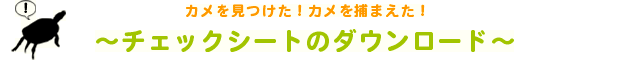 目撃情報を記入するチェックシート2種と、各種カメ類などの見分け方を記したチェックシート3種を用意しました。