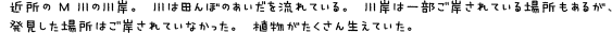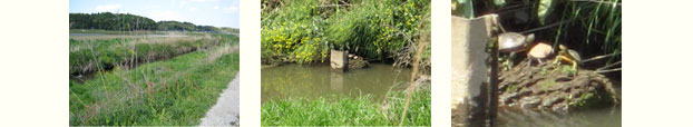 千葉県在住のKさんは、2009年6月14日土曜日、午前11時ごろ、自宅近くの田んぼ 近くを流れるMという河川沿いを散歩していたところ、複数のカメに遭遇しました。